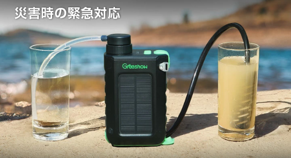 『電動式・携帯浄水器』があれば、飲み水に困らなくなります。